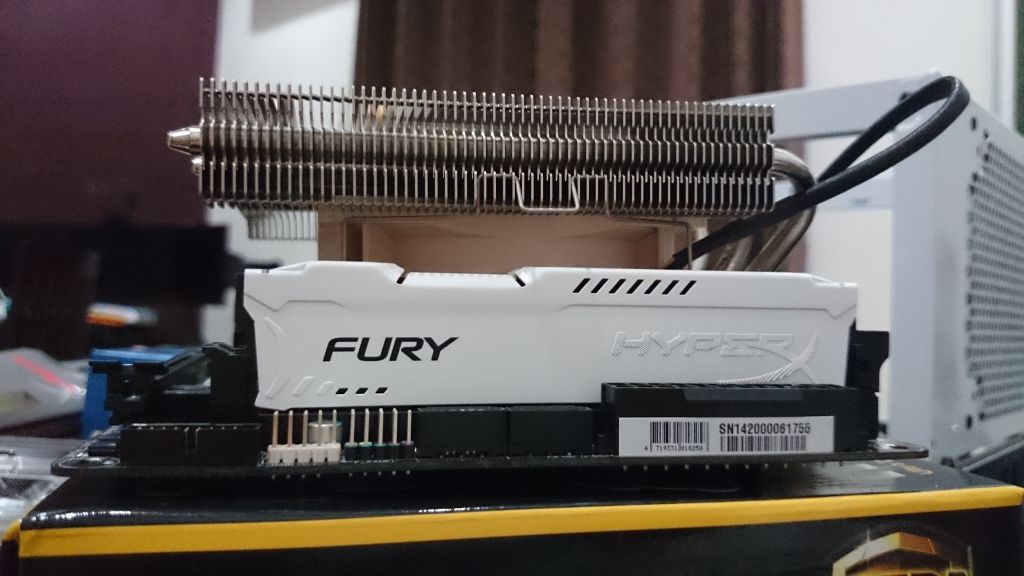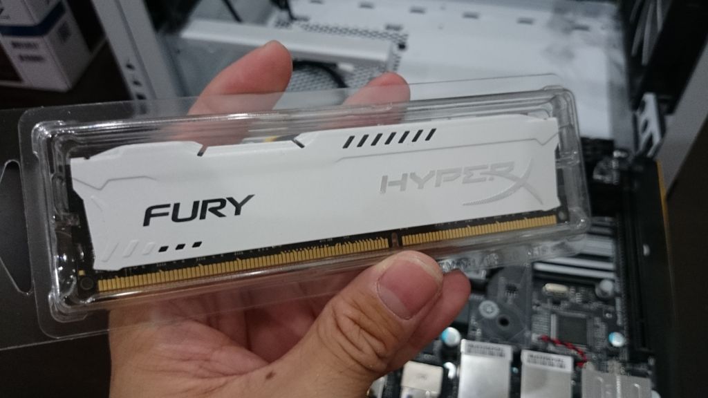 Αποφάσισα να βάλω τη μέγιστη μνήμη που μπορεί να υποστηρίξει η μητρική πλακέτα. Έρχεται με ψήκτρα σε αντίστοιχο λευκό χρώμα. Καταρχάς, ήθελα να πάω για μνήμη χαμηλής τάσης με ECC. Η μνήμη LV είναι δύσκολο να βρεθεί και δεν νομίζω ότι μπορεί να μειώσει σημαντικά την κατανάλωση ρεύματος. Για να υποστηρίξετε τη μνήμη ECC, πρέπει να βρω μια συμβατή μητρική πλακέτα. Ωστόσο, δεν μπόρεσα να βρω καμία μητρική mini-ITX που να μπορεί να υποστηρίξει τη μνήμη ECC και να καλύπτει τις υπόλοιπες απαιτήσεις μου. Για να μην αναφέρουμε ότι η μνήμη ECC και η υποστηρικτική μητρική πλακέτα της, είναι πιο ακριβή από μία συμβατική. Αφού πέρασα αμέτρητες ώρες ψάχνοντας για μια λύση, αποφάσισα να εκμεταλλευτώ τις πιθανότητες και να πάω για μνήμες μη ECC.