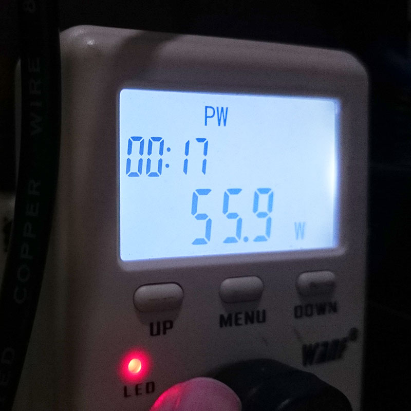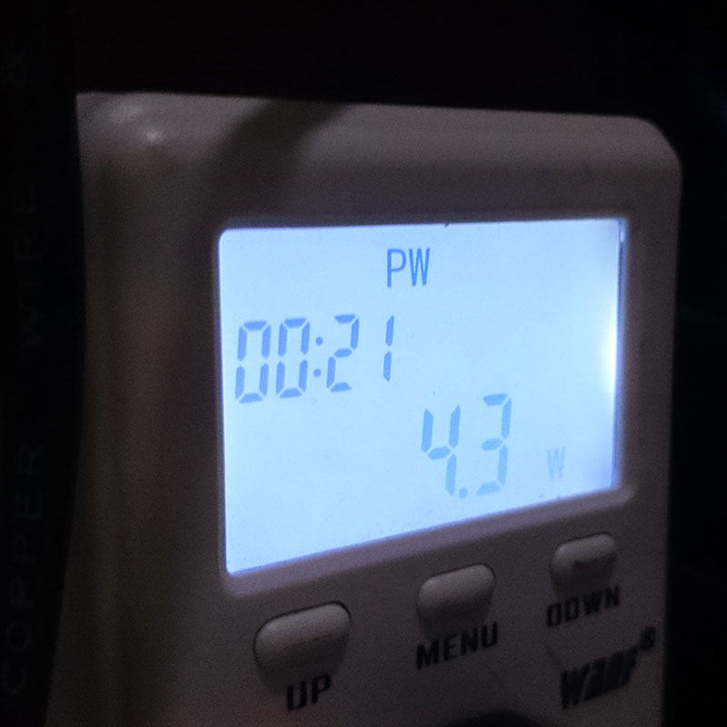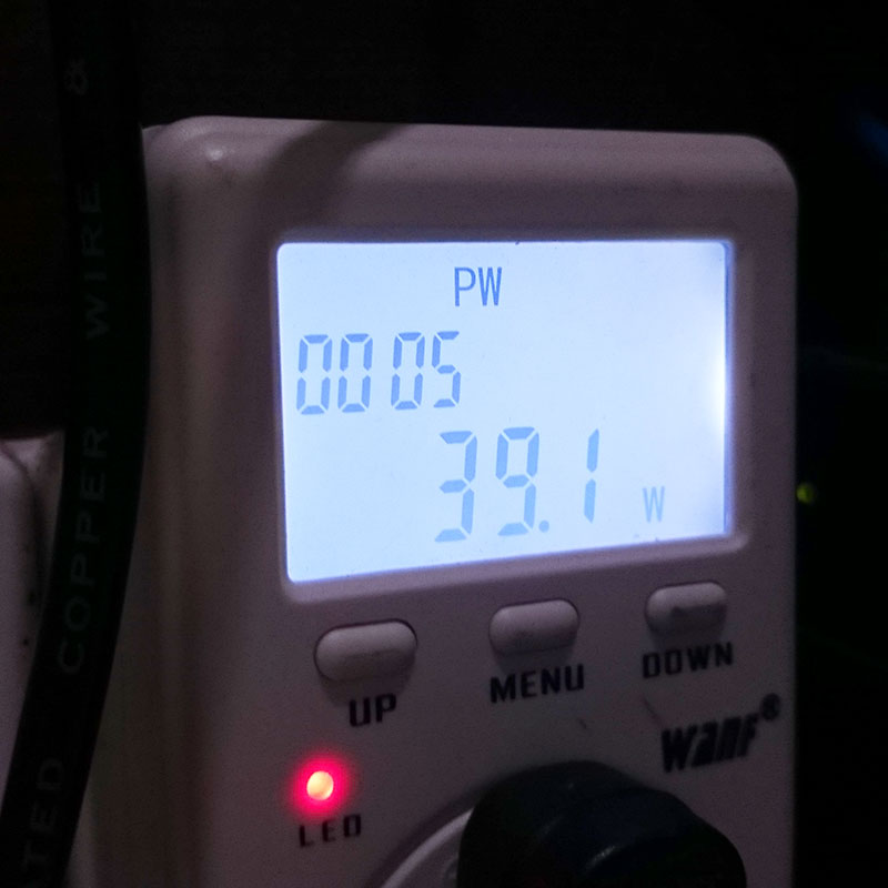 Αλλά πόση ισχύς καταναλώνει το NAS; Για να το βρω αυτό, χρησιμοποιώ το Multifunctional Mini Ammeter με αυτό μπορείτε να μετρήσετε την κατανάλωση ισχύος απευθείας από την πρίζα τοίχου. Εδώ είναι τα αποτελέσματα από 3 διαφορετικά σενάρια.