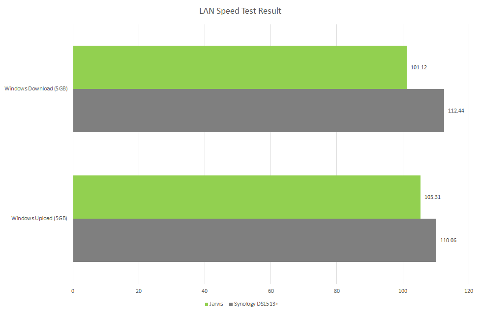 Για να βάλω το αποτέλεσμα σε προοπτική, παίρνω Synology DS1513+ ως σύγκριση. Ο λόγος για τον οποίο επιλέγω το DS1513 + είναι επειδή βρίσκεται στην ίδια τιμή με την κατασκευή μου και οι δύο χρησιμοποιούν το ίδιο λειτουργικό σύστημα (παρόλο που διαφορετική έκδοση).